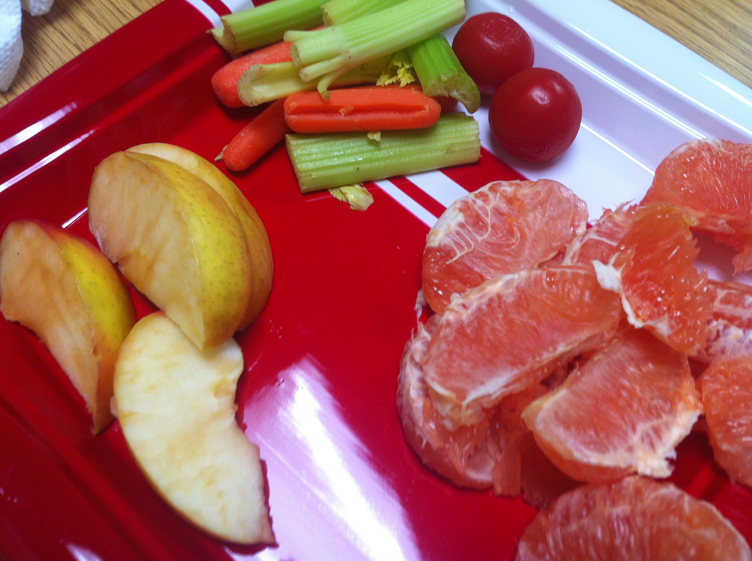 A plate of fruits and veggies.